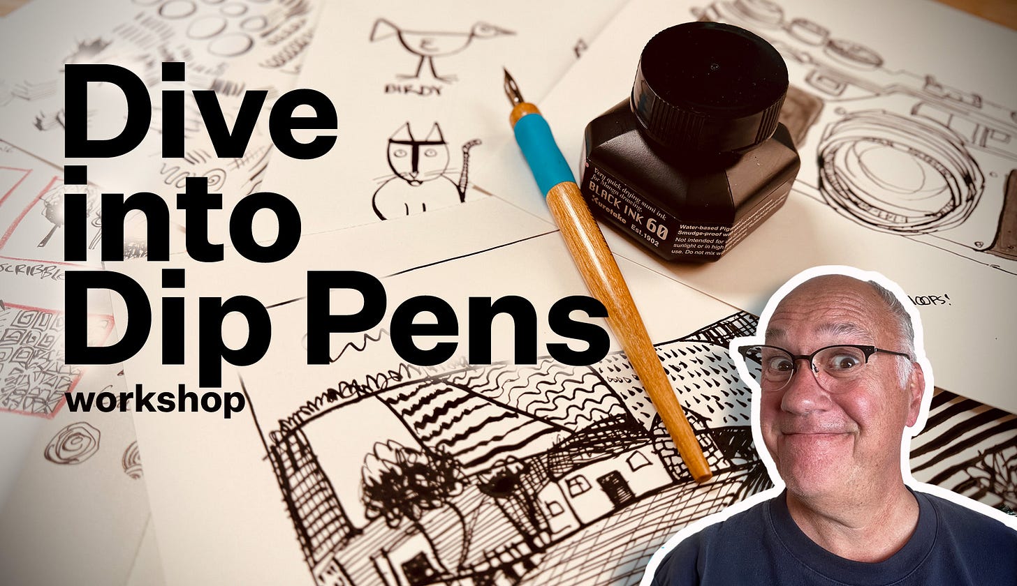 P.S. Next Saturday morning, I'm teaching Dive into Dip Pens—a 3-hour online workshop exploring this most expressive tool where we will make some gorgeous, finished art together. You can join in from anywhere! It’s on Saturday, March 7th at 9 am Pacific. If you can’t make it live, watch the full recording anytime. If you're up for spending a Saturday morning making art, click here to learn more. If not, see you next Friday.